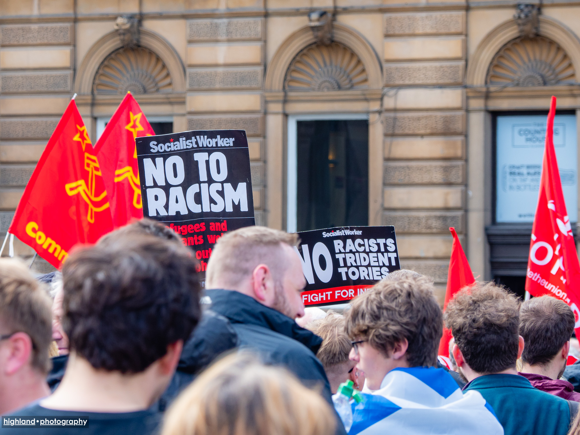 So I did my democratic duty today and rocked up to the “Bollocks to Boris” demo in Glasgow’s George Square. There was a fairly decent turnout, with a diverse crowd pretty much filling the square, music at the east end and the speakers to the west. Lots of EU and Scottish flags at the musical end, whilst the speakers’ end was dominated by what I can only describe as the “Rent-a-Banner” contingent: The Communist and Socialist Workers’ Parties (bless their pointed little heads), assorted 1930s-style union showings and, in the midst, some white-bearded bloke mumbling away into a microphone. Now, I couldn’t actually hear what Corbyn was saying, but the cohort around was definitely pitching the same tired old mantras that we’re all familiar with, from any decade: Destroy the Tories; Resist Racism; Nationalise Everything; Soak The Rich (or whoever they consider “The Rich” to be at any given moment), not one of which is remotely germane to – and which in fact get in the way of – the issue facing us here and now. Didn’t they get the bloody memo?